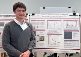 Hugh Cairney presented his work on lead-free perovskite synthesis, structure, and ultrafast dynamics at UChicago's undergraduate research symposium.