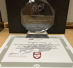 Congratulations to Indranil Ghosh on being awarded a Distinguished Leadership & Service Award from UChicagoGrad in recognition of this diligent work while serving as a vice-president on the Grad Council.